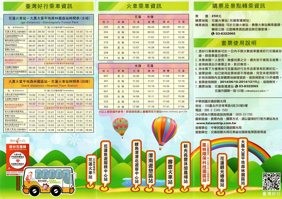 花東縱谷美好假期一日套票 250 元
